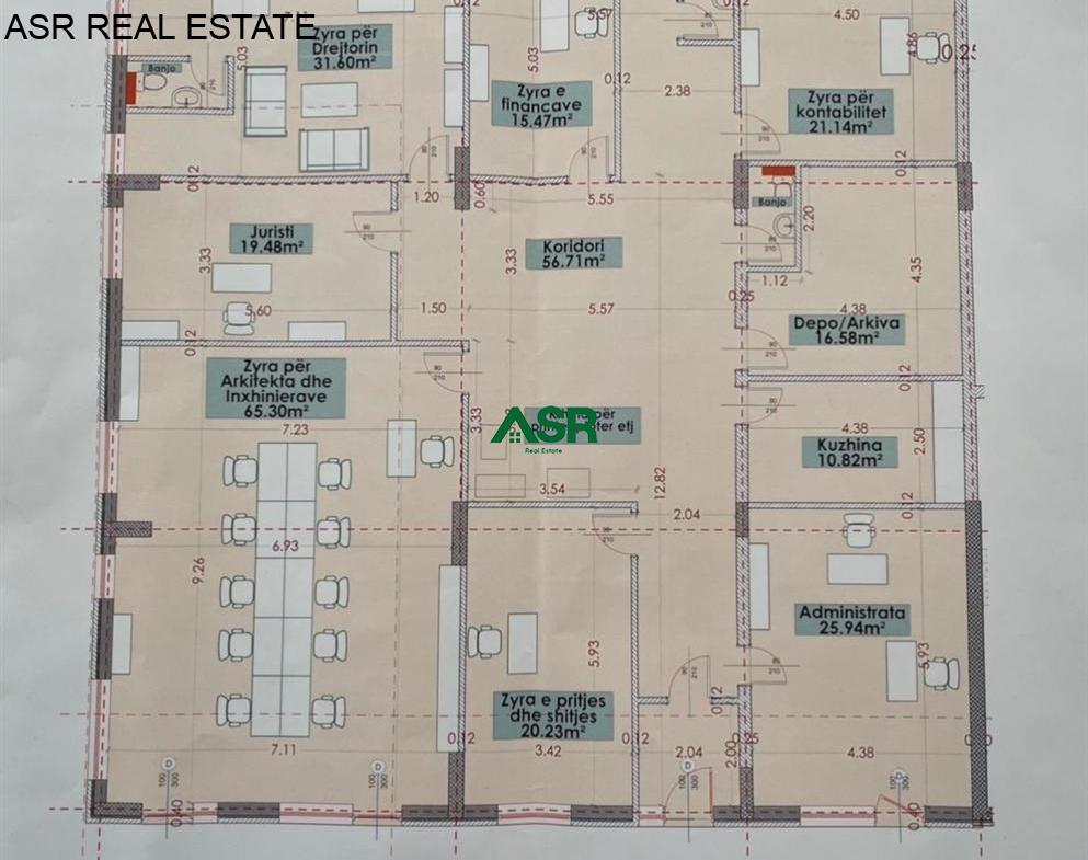 Lokali eshte 327 m2 dhe ka ndarje te vecanta .